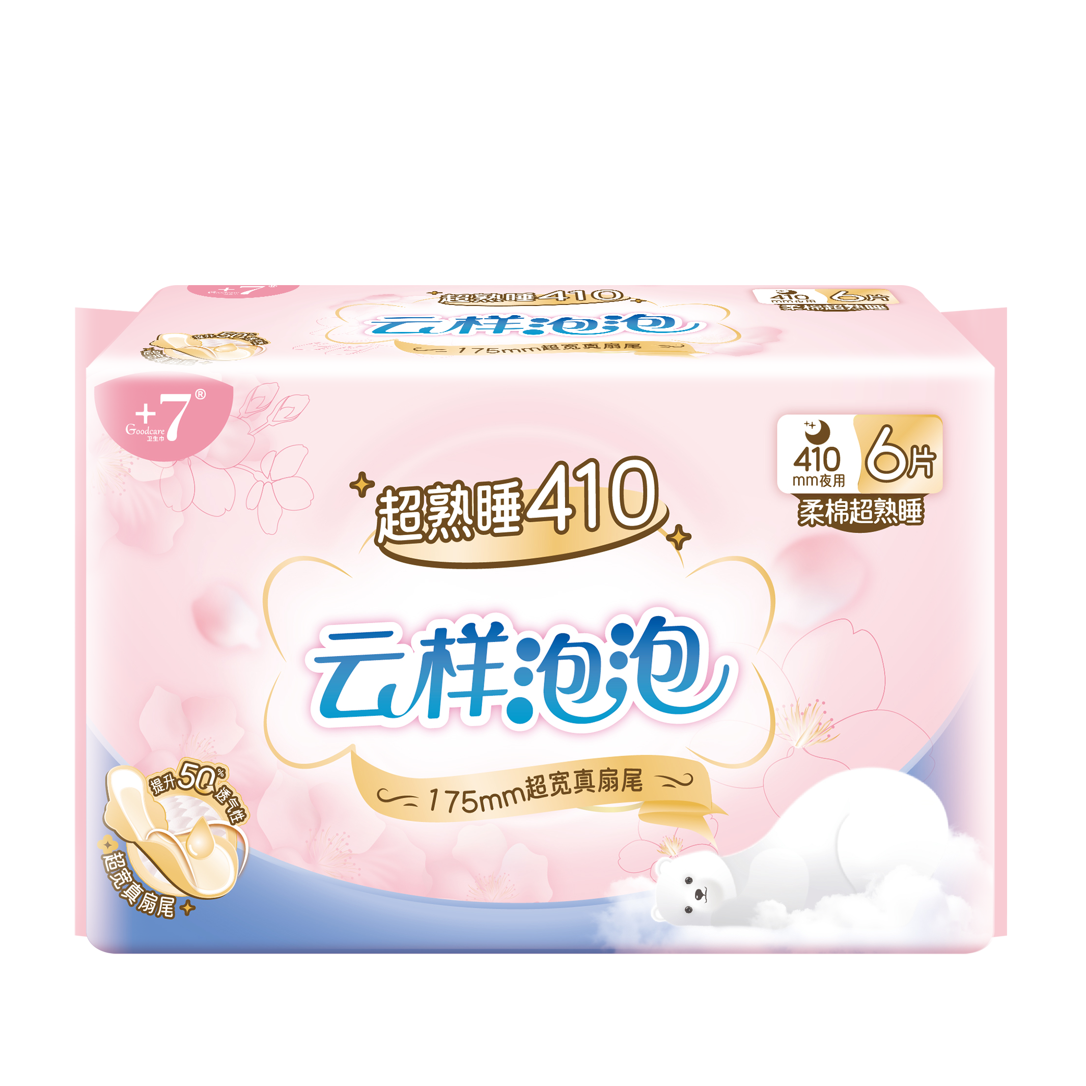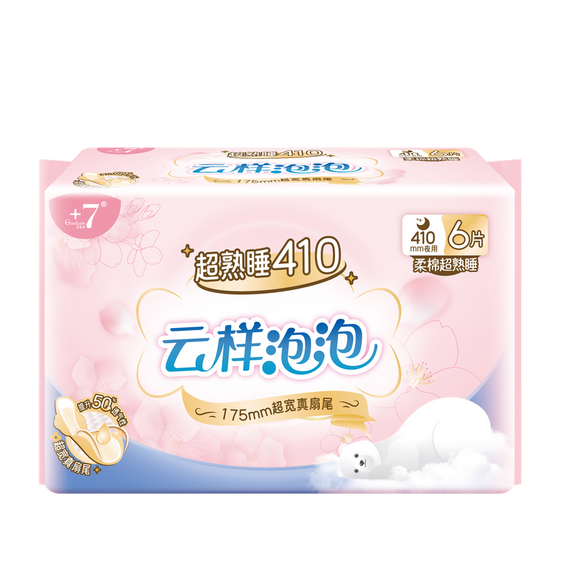 Goodcare+7®云样泡泡柔棉超熟睡410mm卫生巾6片装