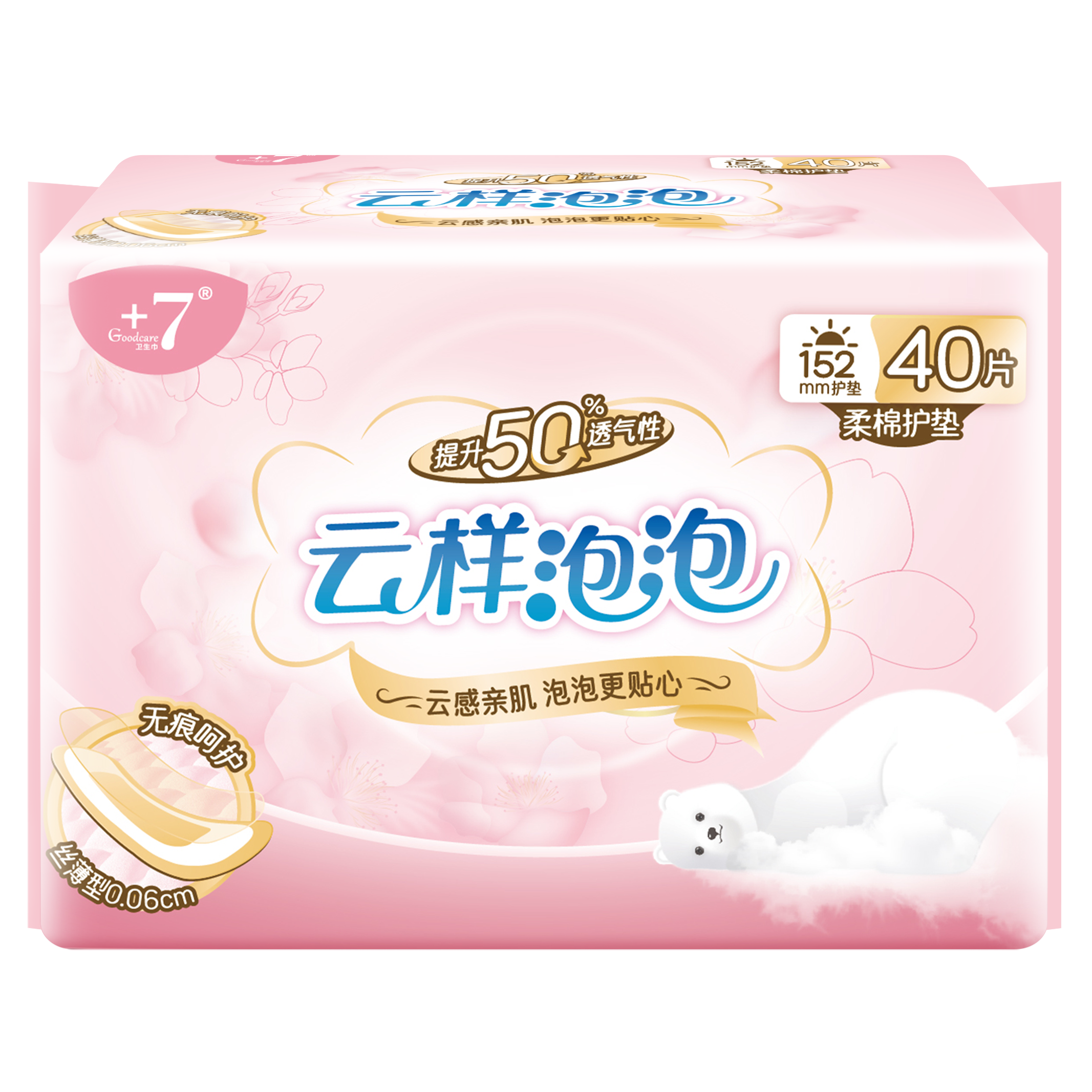 Goodcare+7®云样泡泡柔棉护垫152mm护垫40片装