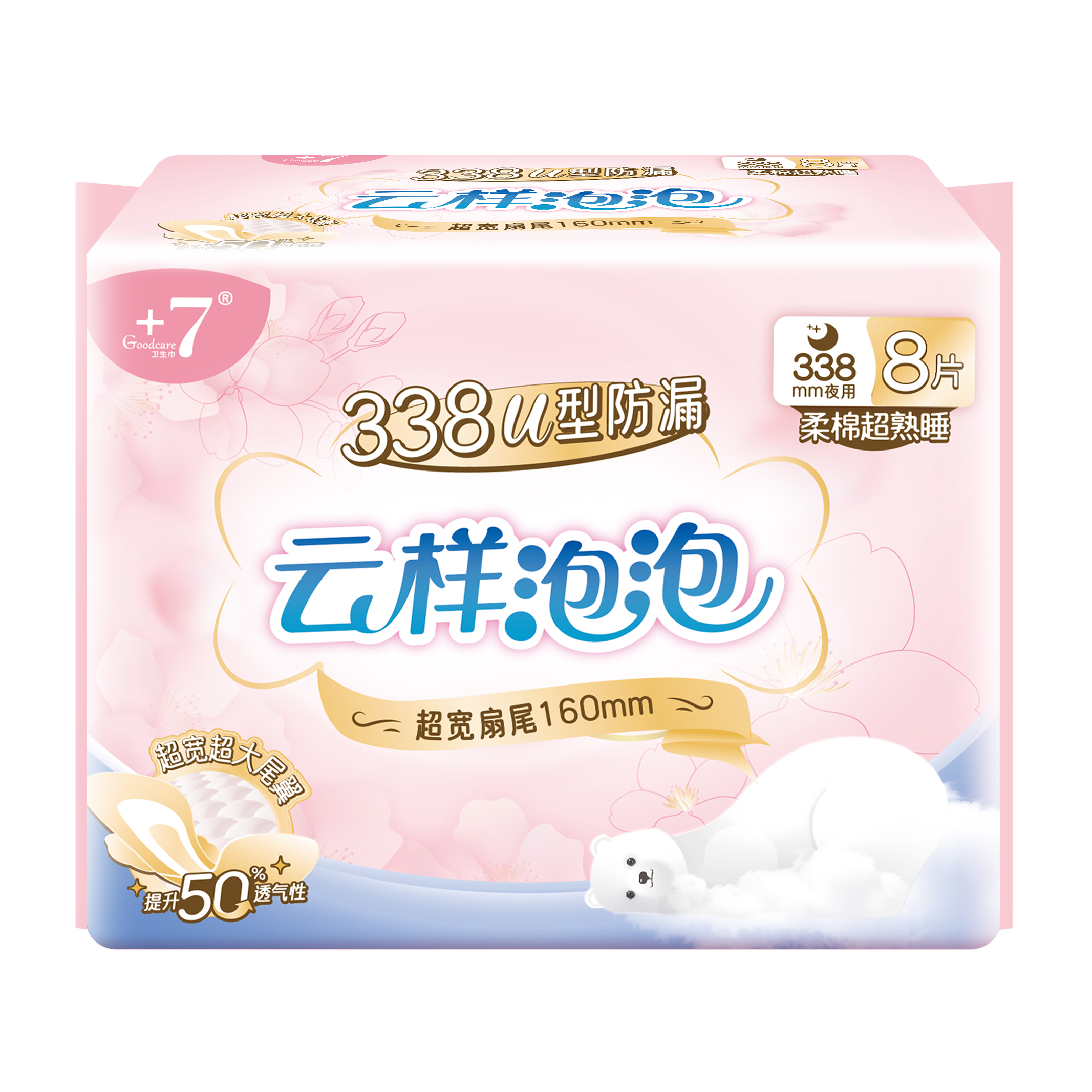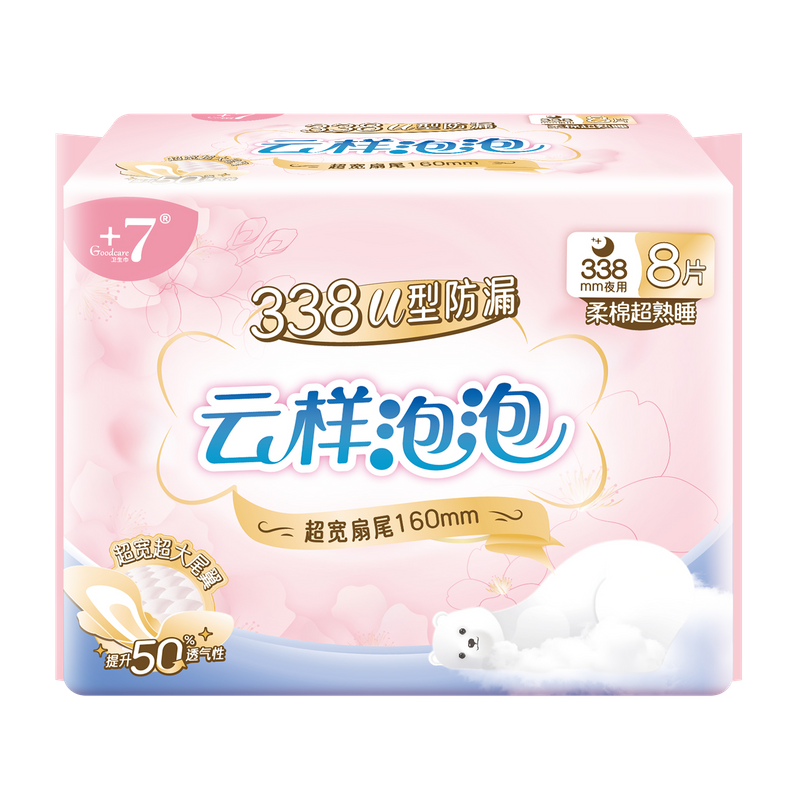 Goodcare+7®云样泡泡柔棉超熟睡338mm卫生巾8片装